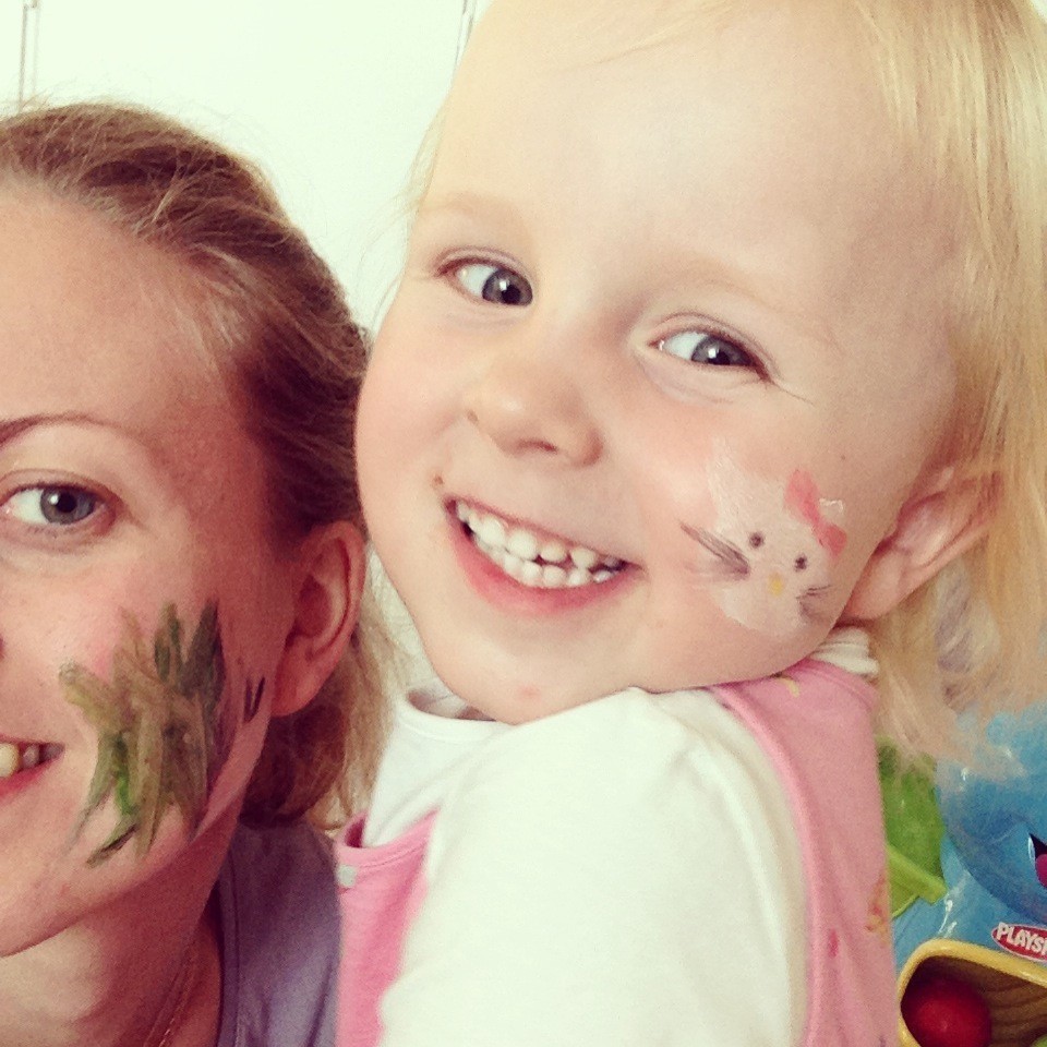 Jag målade en Hello Kitty på J och hon målade en skog på mig 🙂