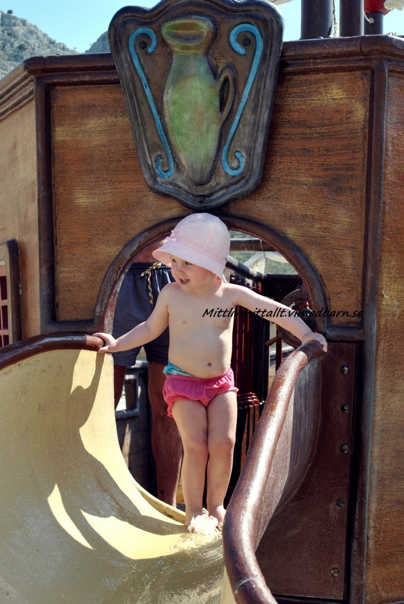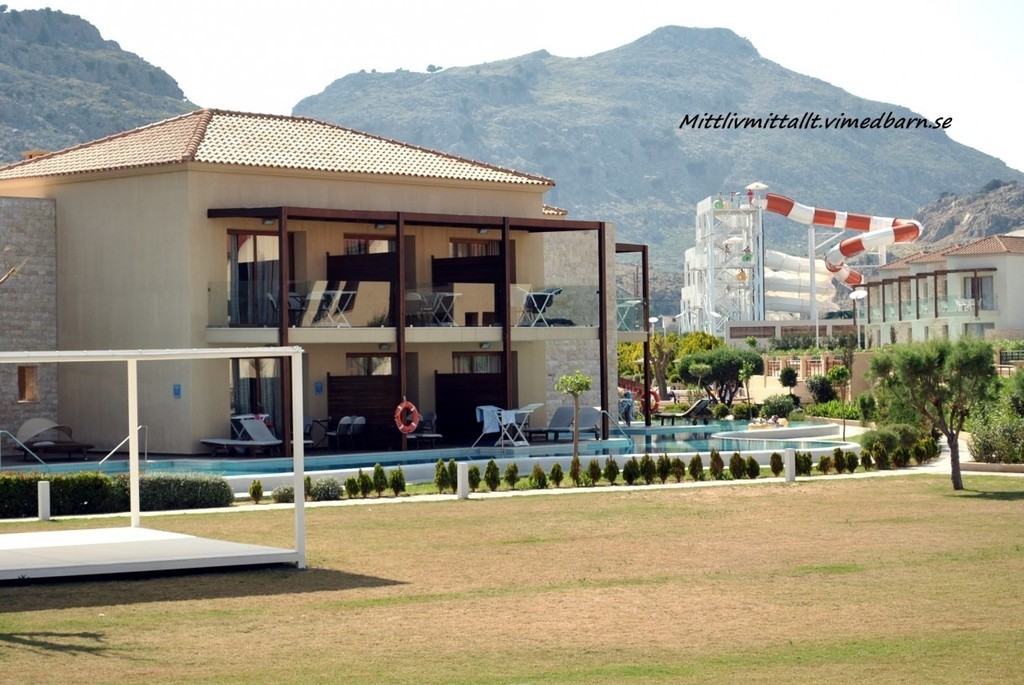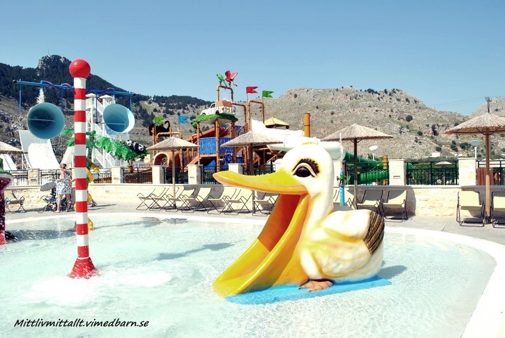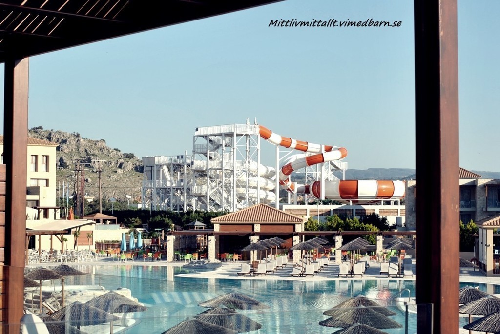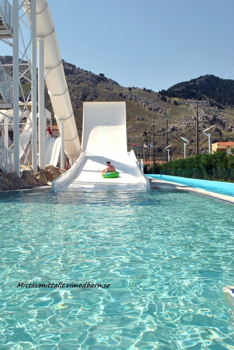Hotellet var fantastiskt och jag kan rekommendera det till alla som reser med barn, stora som små. Hotellet heter Atlantica Aegean Park (fritidsresor) och ligger på ön Rhodos. Vi åkte i slutet av April och jag måste säga att det var riktigt bra, inte alls många turister vilket är ett stort plus. Joeline kunde åka vattenrutschkana och leka/gunga utan att det var kö 🙂 Och sedan var det varmt och skönt.