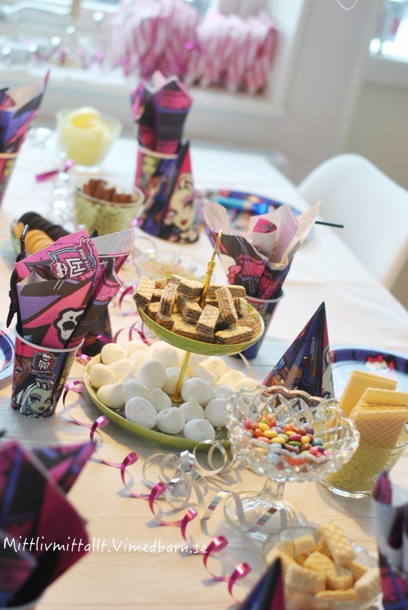 I lördags hade vi kalas nr2 för J 🙂 Hon var så lycklig när hon vaknade, äntligen så var dagen här som hon väntat på. Hon stod och kollade ut om hennes gäster skulle komma (som ni kan se på bilden) och om hon blev glad när första gästen kom. Kommer ni ihåg känslan när man var liten och skulle ha kalas för sina kompisar, hur man längtade och var lite nervös och pirrig. Jag kommer så väl ihåg det. Monster High tema hade givetvis J valt också, det är det som gäller här hemma nu. Ett lyckat kalas med mycket lek och bus.
