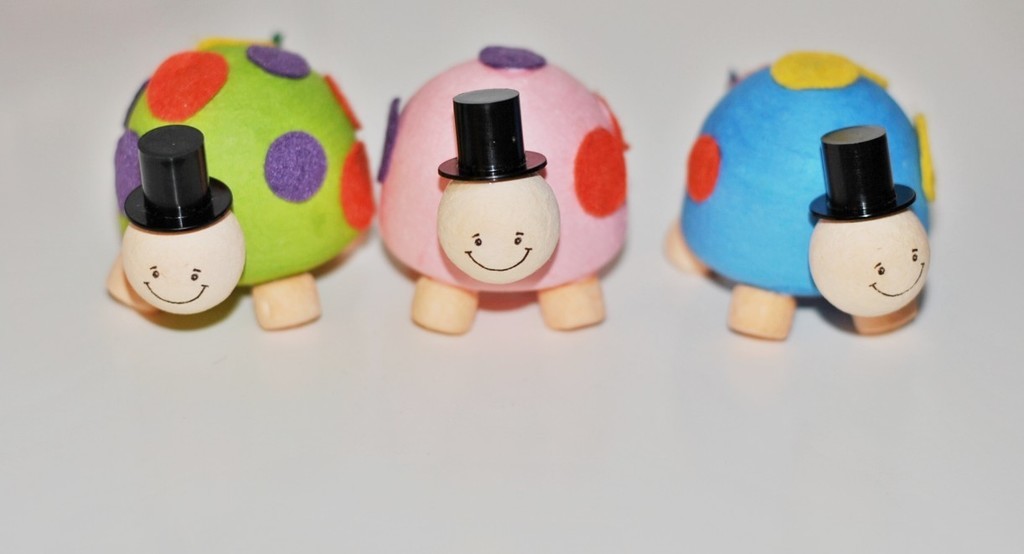 Tre små söta sköldpaddor som Joeline pysslade ihop.