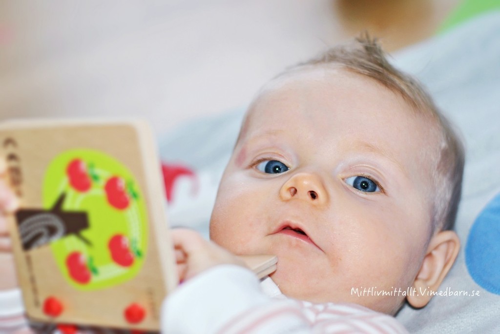 M har kommit i en period nu när hon tycker det är kul att titta i böcker (eller äta på dom) haha men iallafall köpte en bok som hon kan ha när hon badar. Smart eller hur?