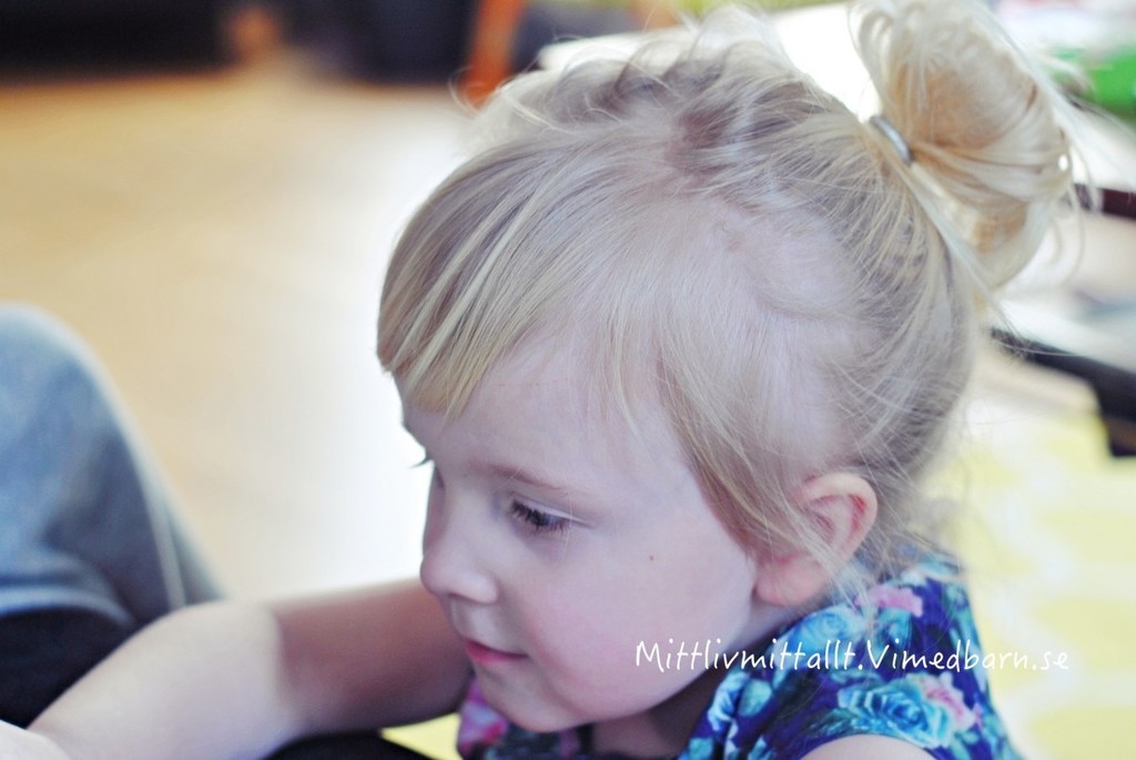 Det första J gör när hon vaknar på morgonen är att sätta sig vid M´s säng. Där sitter hon och sjunger och pratar med henne, så söt. Jag var lite orolig innan M kom till världen att det skulle bli svartsjuka här hemma men J har inte gjort något elakt mot henne utan är väldigt snäll och försiktig. Jag tror att tre år är den perfekta åldern att få ett syskon på. Just för att man är så stor att man kan förklara med ord om det är något som inte är bra istället för att ta ut det i handling som det lätt blir om man inte kan uttrycka sina känslor i ord.