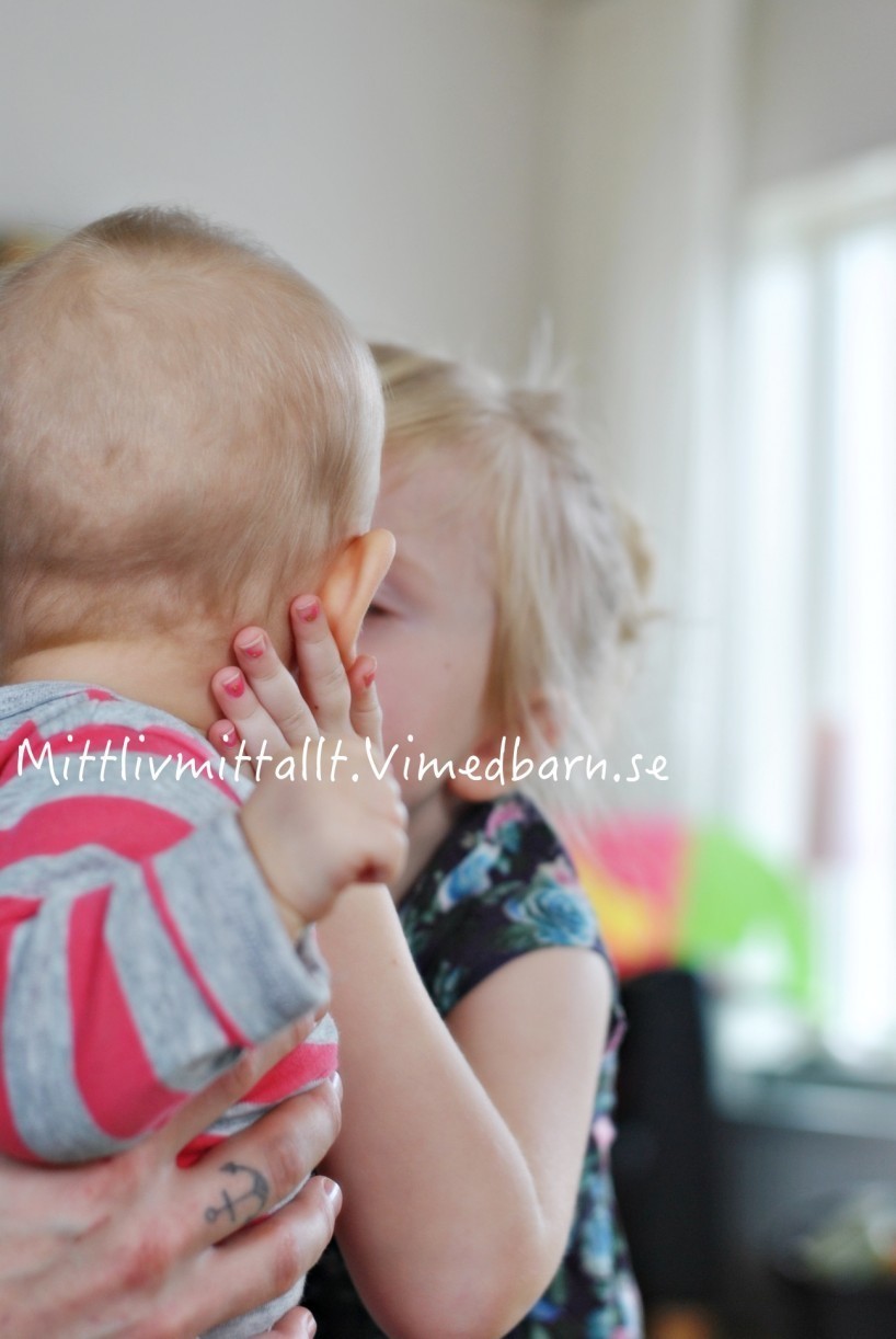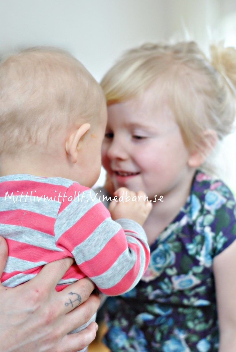 Så mycket kärlek dom här två ger varandra. Om det är någon som kan göra M glad och få henne att skratta så är det J. M ser verkligen upp till J, det är hennes stora idol man märker det. Jag är så otroligt glad och tacksam att jag har kunnat ge dom varandra. Jag hoppas att dom kommer att stå varandra nära hela livet och göra en massa kul tillsammans. Det skiljer tre år, just nu så är det galet stor skillnad men tänk när J är 23 och M 20, då kommer det inte att vara någon skillnad alls. Jag själv har inga syskon och kan ibland känna att jag saknar det även om jag står mina kusiner väldigt nära så är det ändå inte samma sak. Så för mig har det alltid varit en självklarhet att J skulle få ett syskon.
